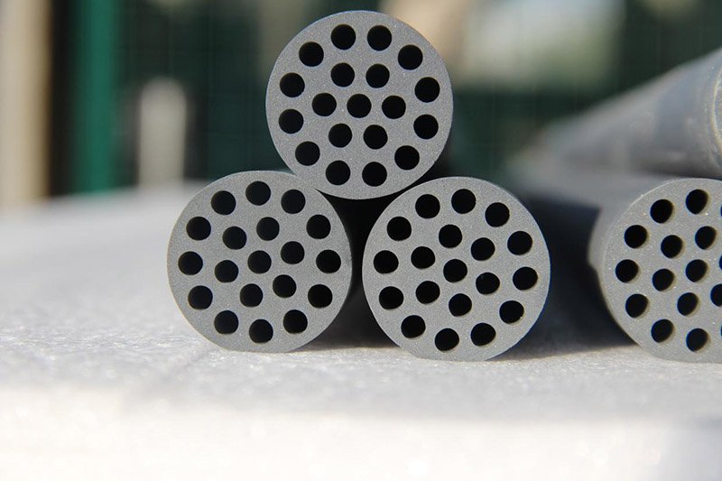 Керамічні мембрани з карбіду кремнію стали ідеальними матеріалами для високотемпературного очищення газу завдяки високій температурній стійкості (до 800 ° C), стійкості до теплового удару та хімічної інертності. Вони ефективно видаляють тверді матеріали, такі як PM2.5 за допомогою скринінгу пори та механізми адсорбції поверхні, і широко застосовуються у високотемпературній обробці димових газів у вугільних хімічних, полісиліконових та сталевих галузях. Наприклад, в процесі активованої коксової десульфуризації в галузі кокінг, мембрани карбіду кремнію не тільки досягають швидкості утримання частинок понад 99%, але й збільшують специфічну площу поверхні за допомогою технології модифікації пор, навантажувальних каталізаторів для досягнення інтеграції-каталізатора видалення пилу та одноразових витрат.