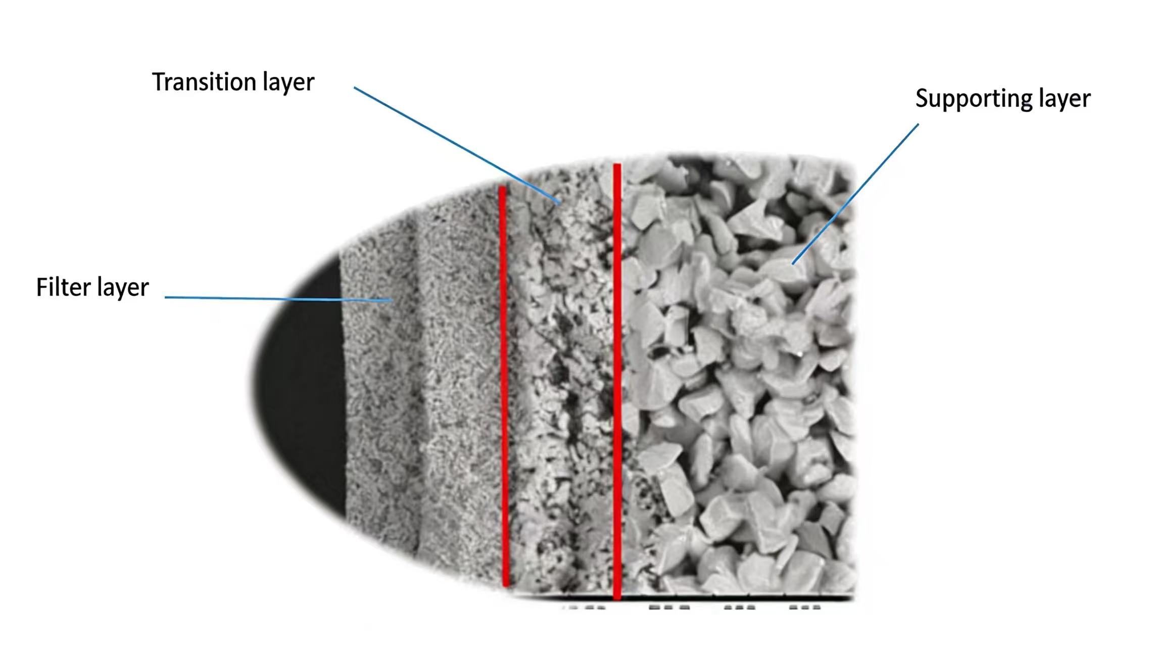 Карбідокремнієві керамічні мембранице високоефективні неорганічні керамічні фільтраційні мембрани з асиметричною пористою структурою. Керамічні мембрани з карбіду кремнію, виготовлені за допомогою спеціальної технології спікання, утворюють унікальну градієнтну структуру пор, що складається з фільтруючого шару, перехідного шару та опорного шару. Ця градієнтна структура пір дозволяє керамічним мембранам з карбіду кремнію досягати високоефективного перехоплення та видалення домішок із різними розмірами частинок, ідеально задовольняючи вимогам покупців щодо різних видів фільтрації, таких як мікрофільтрація, ультрафільтрація та нанофільтрація.