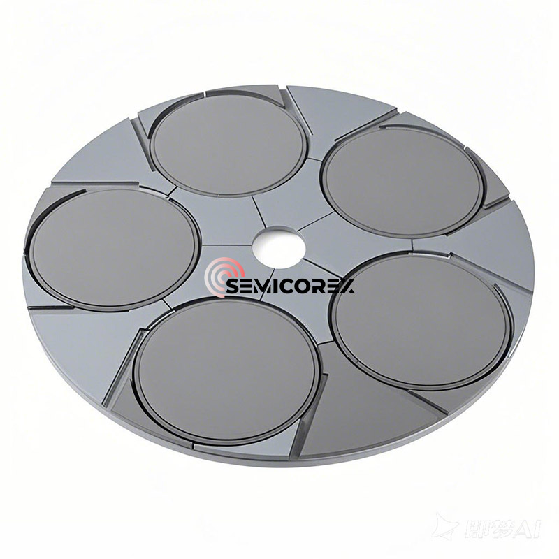 Реактор епітакси Aixtron G5+ виступає як орієнтир у галузі для зростання ганів, SIC та інших сполук напівпровідників. Планетний сприйнятник є ключовим для оптимізації потоку газу, забезпечення точного обертання вафель, підтримки точного контролю температури та досягнення рівномірного осадження епітаксіальних шарів. Його інноваційний дизайн значно підвищує повторюваність процесу, що робить його ідеальним вибором для виробничих середовищ з великим обсягом.