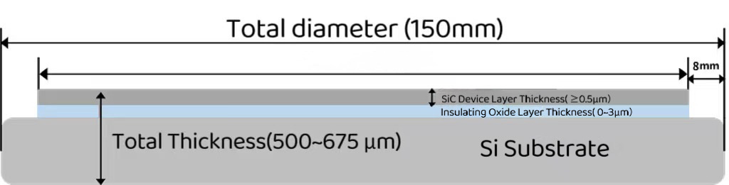 Ізоляційний оксидний шар, розташований між кремнієвою підкладкою та шаром пристрою SiC, є середнім шаром пластини SICOI. Ізолюючи шляхи струму між верхнім і нижнім шарами, ізолюючий оксидний шар ефективно знижує ризик коротких замикань і гарантує стабільну електричну роботу напівпровідникових пристроїв. Завдяки низьким характеристикам поглинання він може значно зменшити оптичне розсіювання та підвищити ефективність передачі оптичного сигналу напівпровідникових пристроїв.