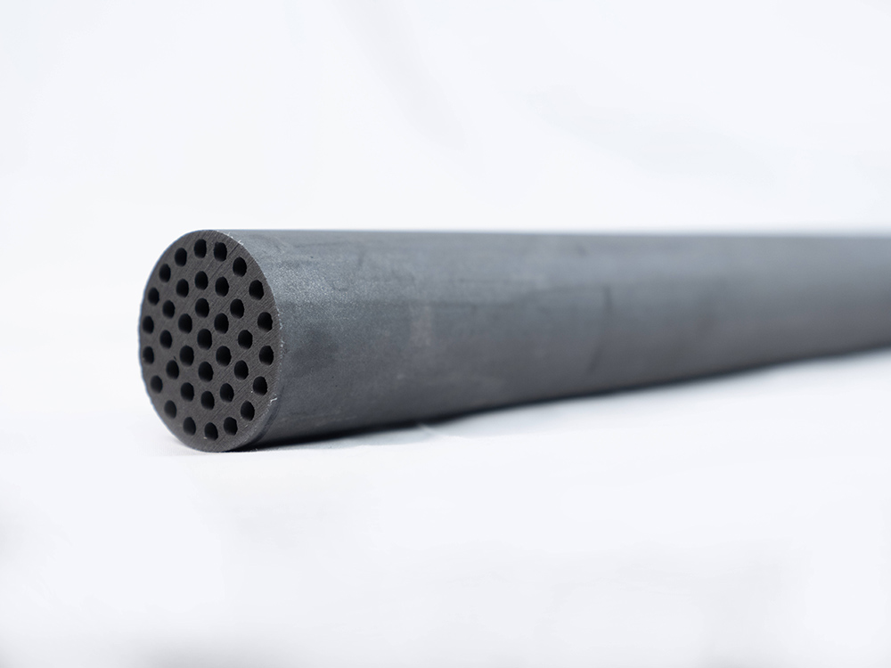 Мембрана карбіду кремнію розроблена з багатоканальною трубчастою структурою, яка працює за допомогою методу фільтрації перехресного потоку. Ця конструкція посилює процес розділення, де кормова рідина швидко тече всередині мембранних труб. Під тиском пермеата, що містить невеликі молекулярні компоненти, проходить через мембрану в напрямку, перпендикулярного потоку, а утримується утримується, що містить більші молекули. Ця унікальна конфігурація перехресного потоку значно знижує забруднення та засмічення, оскільки поверхня мембрани постійно очищається проточною рідиною. Як результат, система може ефективно працювати протягом тривалого періоду, підтримуючи високу продуктивність без значних перерв на технічне обслуговування.