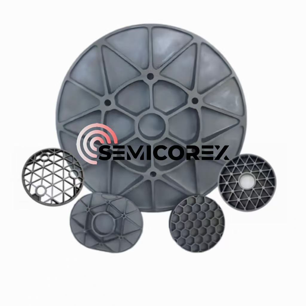 Для підвищення зручності експлуатації та зниження енергоспоживання обладнання Semicorex використовує високу жорсткістькарбід кремніюдля виготовлення дзеркальних заготовок і включає в себе складні ґратчасті структури всередині заготовок для досягнення вимог щодо легкої ваги дзеркал із карбіду кремнію. Ця геніальна комбінація вибору матеріалу та конструктивного дизайну значно зменшує вагу відбивних дзеркал із карбіду кремнію, зберігаючи при цьому їхню жорсткість. Як наслідок, дзеркала з карбіду кремнію займають незамінну вигідну позицію в таких сферах, як аерокосмічна промисловість і дослідження далекого космосу.